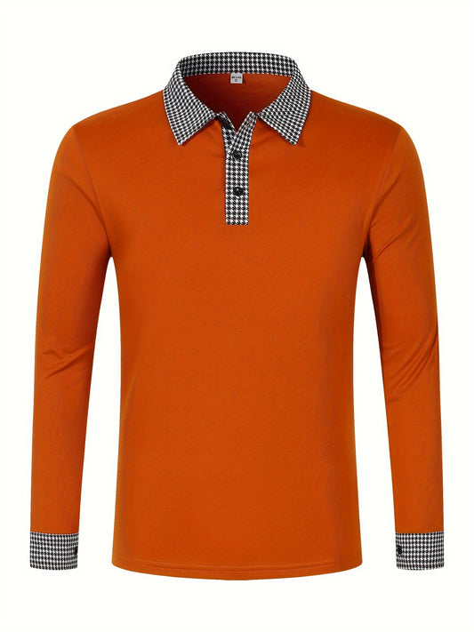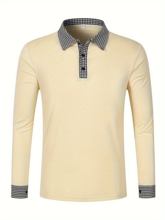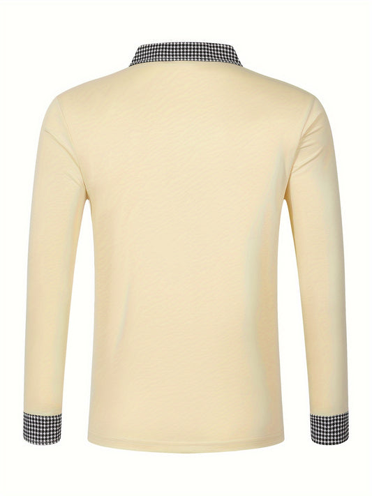 Men's Casual V-Neck Long Sleeve Rugby Shirt For Spring Autumn, Men's Clothing