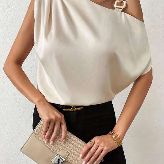 Chain Strap Asymmetric Blouse, Casual Solid Color Blouse For Spring & Summer, Women's Clothing