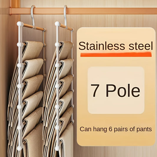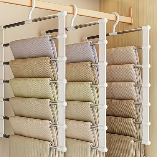 3pcs Space-Saving Foldable Stainless Steel Pants Rack - Rust-Resistant Wardrobe Organizer for Jeans, Leggings & Pants - Durable Plastic Hangers with Multiple Hooks, Ideal for Home & Retail Use, Clothes Organizer Storage