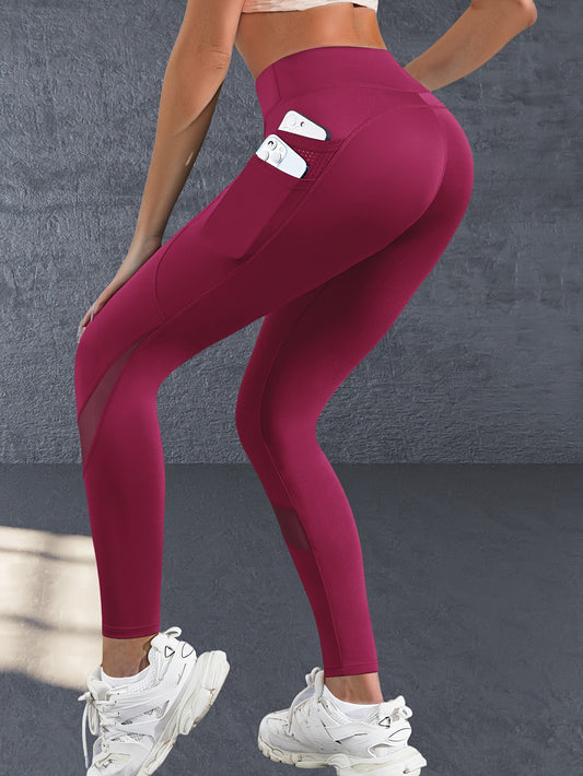 Boost Your Workout with Women's Tummy Control Sports Yoga Leggings - Phone Pocket, Mesh Contrast & Breathable Tight-Fitting Pants!