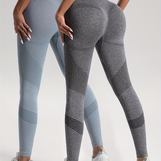 2pcs Solid Color High-Stretch Fitness Yoga Sports Leggings, Soft Breathable Yoga Tight Pants, Women's Activewear