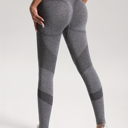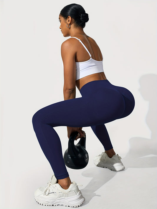 Women Fitness Yoga Seamless High Elastic Quick Dry Push Up Sports Leggings, Solid High Waist Running Workout Joggings Pants, Women's Activewear