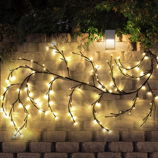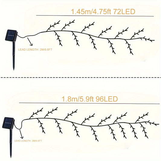 1pc Solar Rattan Branch String Lights, 72/96 LEDs Warm White,, 8 Modes, Decorative Indoor Outdoor Willow Tree Lighting, Perfect for Gazebo, Garden, Festive Party, Cafe, Balcony Decor