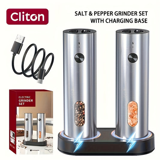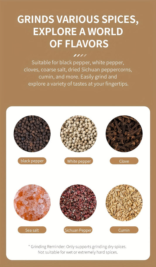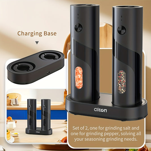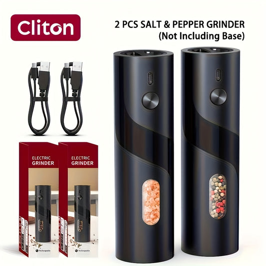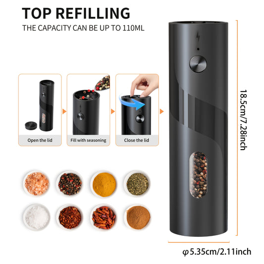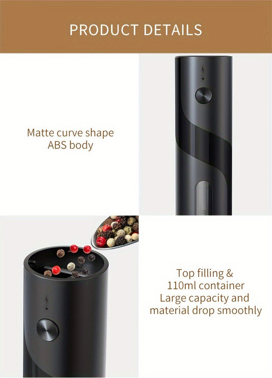 1pc or 2pcs Rechargeable Electric Salt & Pepper Grinder with LED Light - Automatic Salt & Pepper Mills, USB Charging, Adjustable Coarseness, 110ml Large Capacity, Ideal for Kitchen & Dining Use, Kitchen Spice Mill | Modern Ki