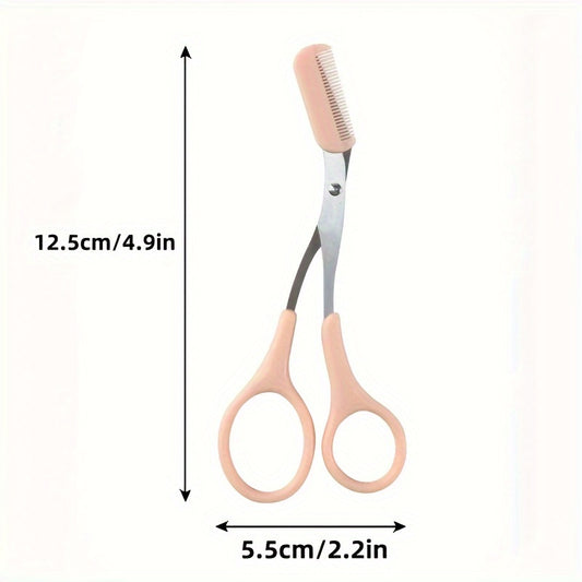 1pc Pink Eyebrow Trimmer with Built-in Comb, Stainless Steel Precision Grooming Tool, Perfect for Beginners, Plastic & Metal, Ergonomic Handle, Fragrance-Free
