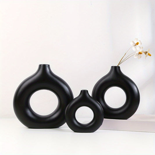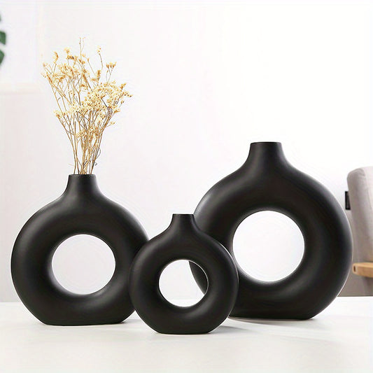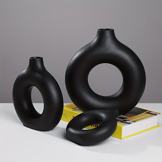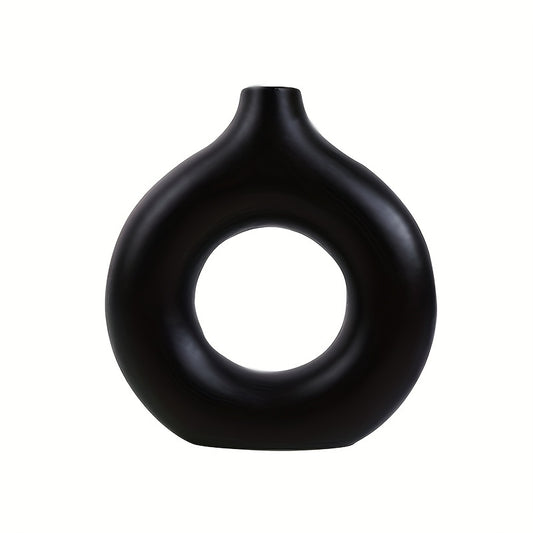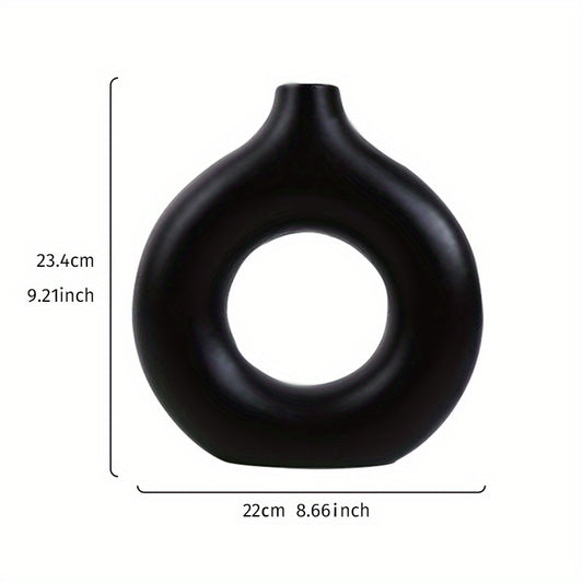1pc Nordic Style Black Resin Vase for Modern Home Decor - Boho Pampas Flower Vase for Wedding, Dinner Table, Living Room, Office, Bedroom - Minimalist Decorative Gift
