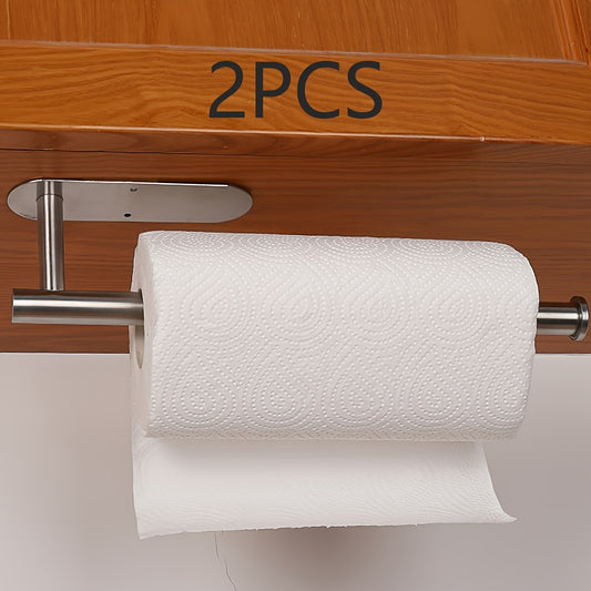 1pc Self-Adhesive Paper Towel Holder Under Cabinet For Kitchen, Bathroom Tissue And Towel Holder, Plastic Wrap And Roll Paper Storage Storage Rack, Home Kitchen Bathroom Supplies