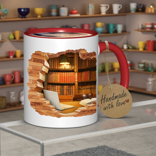 1pc 11oz 3D Magic Color-Changing Book-Themed Ceramic Mug - Reusable Coffee & Tea Cup with Bookshelf & Open Book Design, uthor Logo Slot, Hand Wash Only - Gift for Readers, Writers, Librarians (Birthday/Christmas/Halloween), C