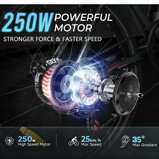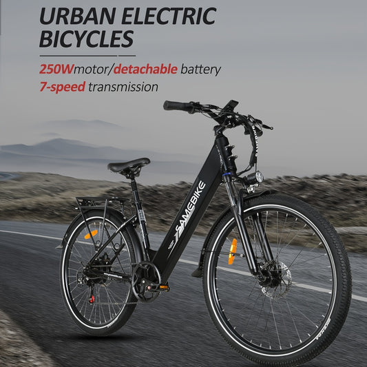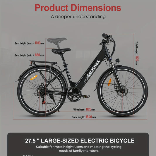 MileCity1 Step-Thru Electric Bike - Heavy-Duty Adult e-Bike with 250W Motor, 120KM Long Range, Front Suspension, 7-Speed Gears, LED Display, 66.04cm x 4.95cm All-Terrain Tires, Dual Brake System - Fast-Charging, for City Comm
