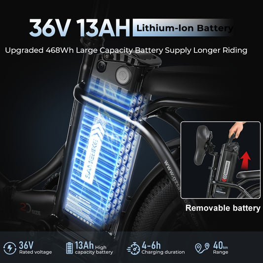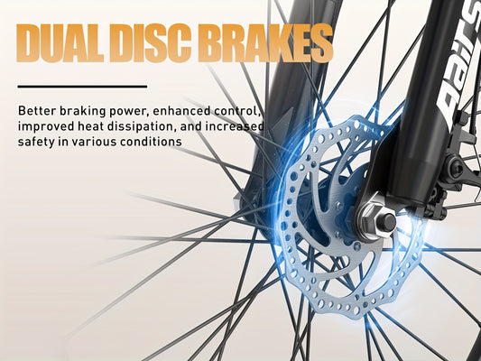 Aairsk 60.96cm Electric Bicycle for Adults, 7-Speed Ebike with 36V 13AH Replaceable Built-in Battery & 250W Motor, Full Suspension Electric Mountain Bike, 25 Km/h And 80km Range E-bike for Urban Commuters