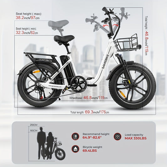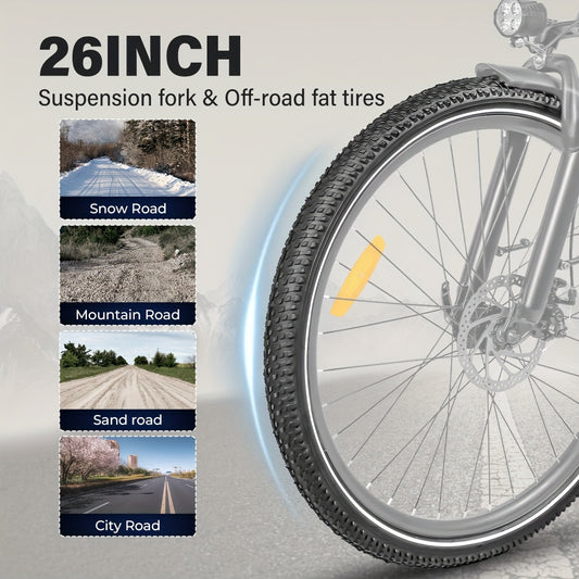 Adult E-Bike, Max 55miles And 25 KM/H City Cruising E-Bike, 50.8cm Tire Mountain Bike Commuting Snow Bike, 468WH Removable Battery, 7 Speed E-Bike, Front Suspension Bike with 6 Styles Of Hex Wrenches, 1 Screwdriver, And 2 Typ