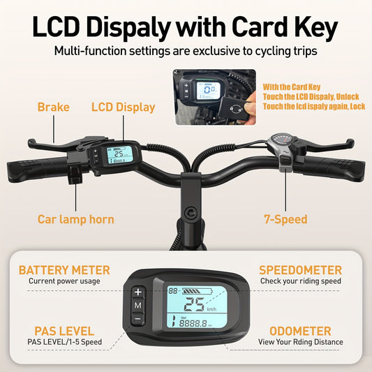 Folding Electric Bike | 26x3.0-inch Durable Tires | 48V13AH Removable Battery | 250W Motor | Disc Brakes | LCD Smart Meter | 100-110km Power-Assisted Range, Mountain Bike, Adult Bike, Cycling Assistant, Urban Commuting, Mode