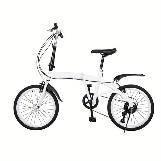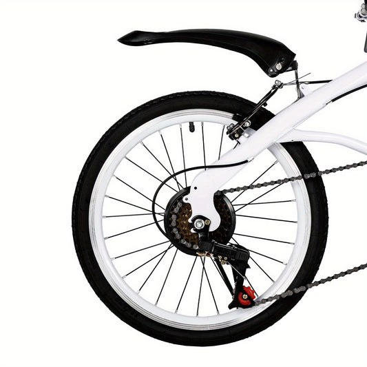 50.8 cm Folding Bicycle Adult Lightweight 6-Speed Height Adjustable Folding Bicycle Adult for Outdoor Cycling Commuting White with Bicycle Circle