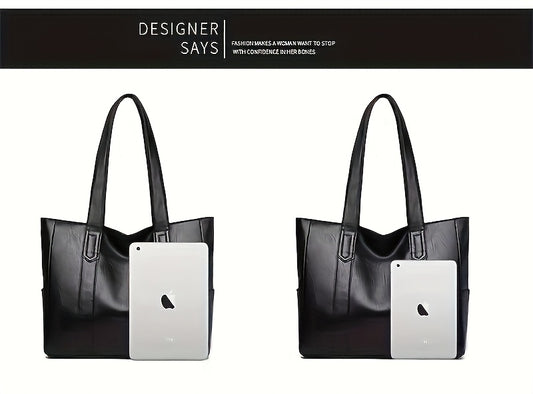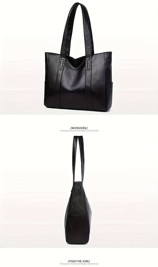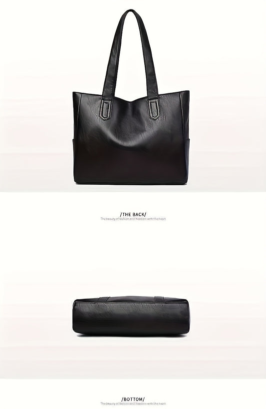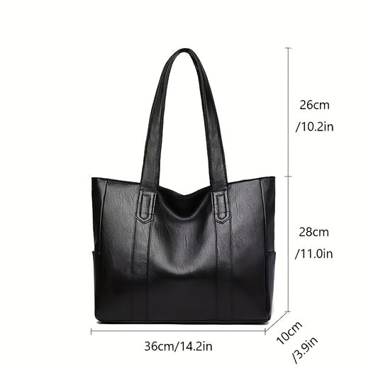 1pc Elegant Women's Shoulder Tote Bag - Large Capacity Durable PU with Zipper Closure, Double Handles & Polyester Lining, Deep Brown/Black - Perfect for Work,, Travel - Ideal Gift for Students & Professionals, Work Handbag, S