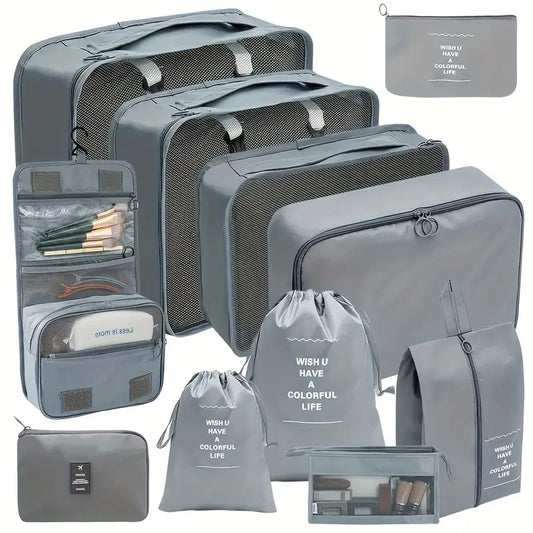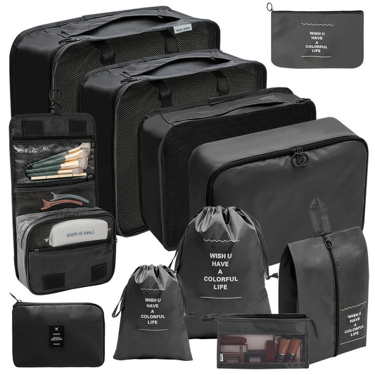 11pcs Solid Color Packing Cubes for Suitcases, Travel Luggage Packing Organizer Bags, with Laundry Bags, Compression Storage Shoe Bags, Clothing Underwear Bags, etc
