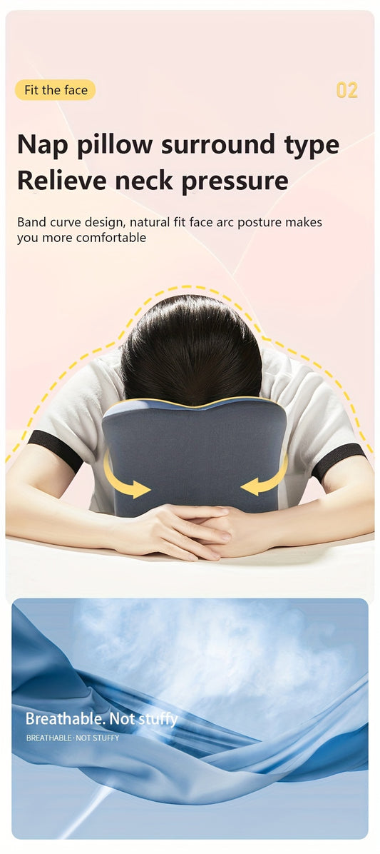 1pc Ergonomic U-Shaped Nap Pillow –, Portable & Machine Washable, Comfortable for Office, Student, and Travel Use, Available in Blue, Gray, Pink