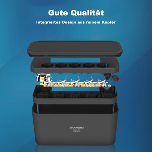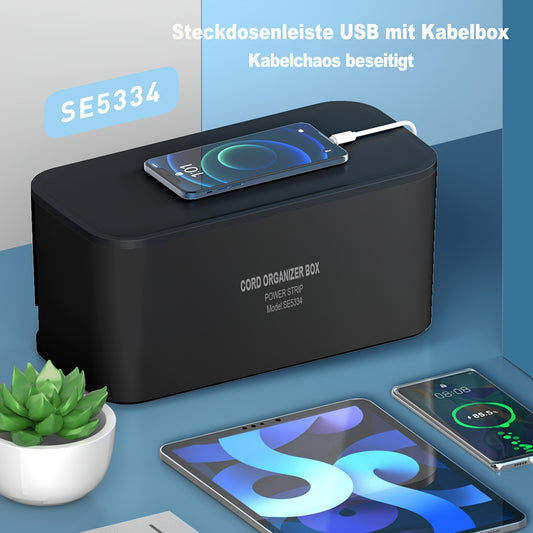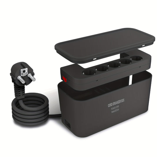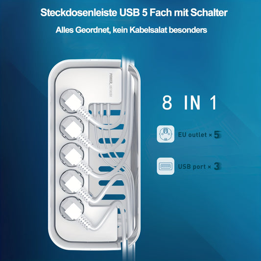 Surge Protector Power Strip with Cable Organizer, 5 Outlets & 3 USB Ports, 2500W Capacity, 2m Cord, Compact Design for Home Office & Dorm Room, Black, Power Strip Surge Protector