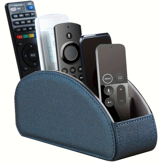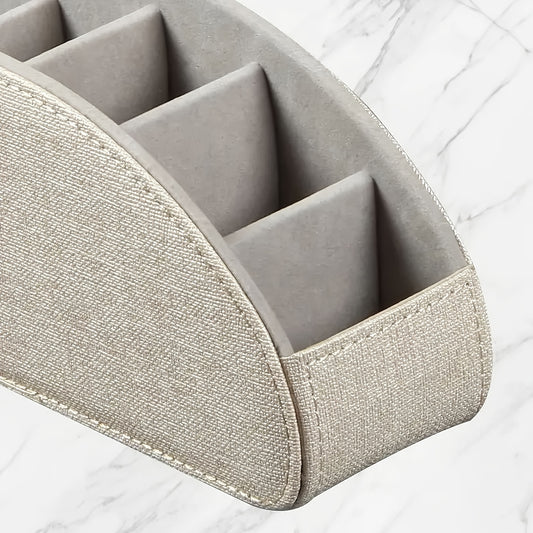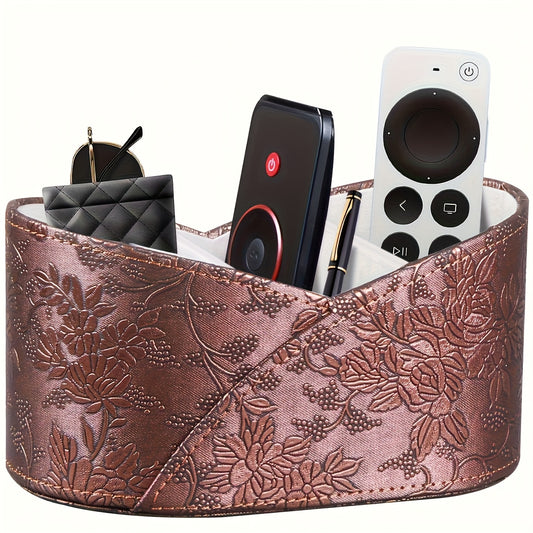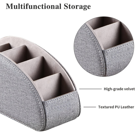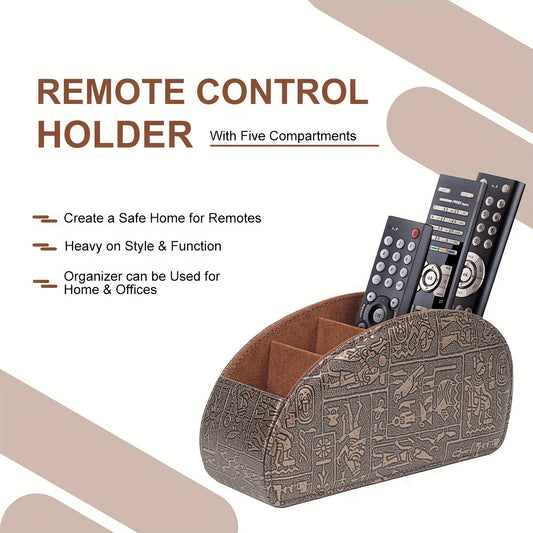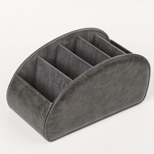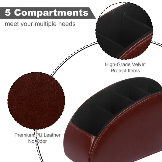 MILITWO 5-Compartment Faux Leather Remote Control Holder - Versatile Desktop Organizer for Appliance Controllers, Brushes, Eyeglasses & Office Supplies - Compact Storage Box with Pen Holder, Ideal for Home & Office Desk Organ