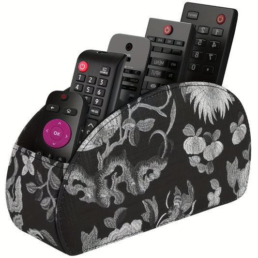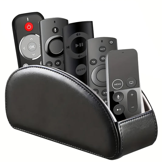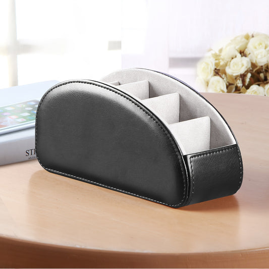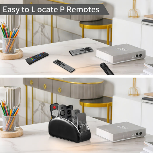 Remote Control Holder with 5 Compartments - Black Faux Leather Remote Caddy for TV, DVD, Blu-Ray, Media Player, And Heater Control, Independent Storage, Desk & Drawer Organizer for Home Storag, Desk & Drawer Organizer for Hom