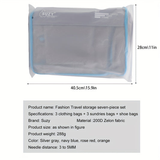 Portable Travel Storage Bag Set of 7pcs Suitcase Clothes Organizer Pouches with Clothing Bags, Underwear Pouches, and Shoe Pouches Suitable for Business Trips by Both Men and Women