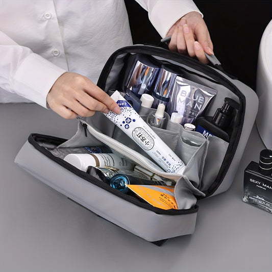 Multi-Functional Travel Organizer with Top Zipper Closure & Hanging Loop - Heavy-Duty High Quality Folding Toiletry & Cosmetic Case with Multiple Compartments, Golden-Tone Hardware, Durable Fabric Construction - Ideal for Bus
