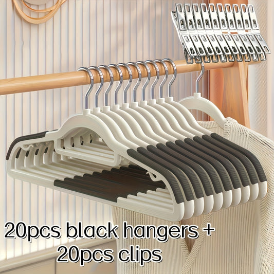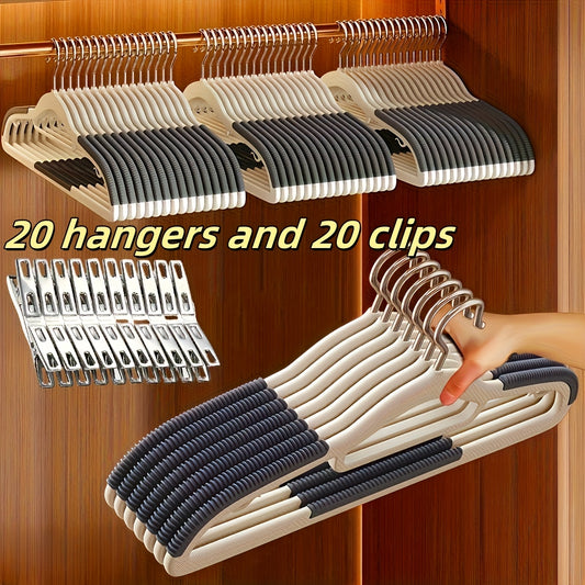 LDQ- 40pcs Set Non-slip Plastic Hangers + Stainless Steel Clips, Strong and Durable, 360° Heavy-Duty Rotating Hook Hanger, Four Seasons Home Clothes Drying and Storage and Organization, Suitable for Bedroom, Bathroom, Hom, R