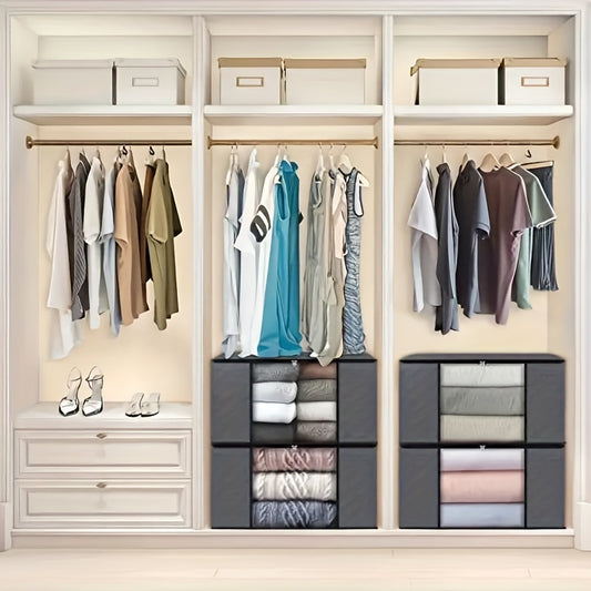 Set of 10 Storage Items for Clothing, Including Folded Blankets, Designed for Organizing Bedrooms, Closets, Clothes, And Quilts, Featuring Handles And Straps, in Gray Color, Suitable for Under-Bed Storage.