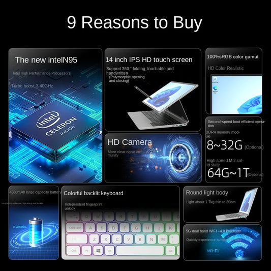 Factory Direct 14-Inch IPS Touch Screen 2-in-1 PC Tablet Light Portable Intel SSD Home Laptop New Cross-Border Wholesale English