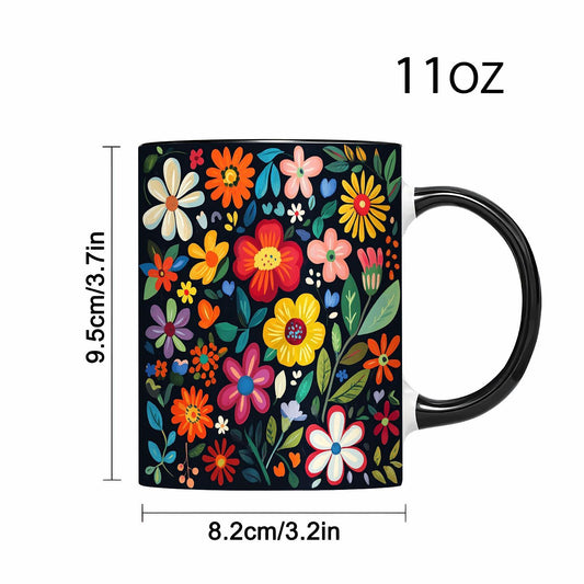 11oz Ceramic Floral Mug - Vibrant Flower Design, Reusable Poly-Coated Cup for Coffee, Tea, Milk, Beer | Ideal for New Year, Christmas, Easter, Valentine's, Birthdays & Office Decor, Festive Mug | Colorful Floral Pattern | Glo