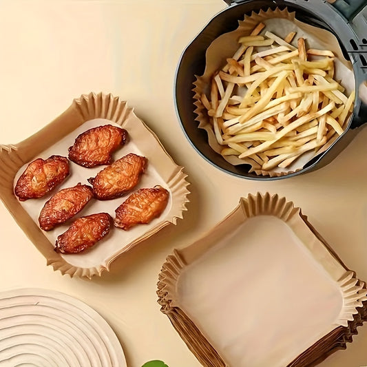 10/50/100pcs, Disposable Air Fryer Liners (16.0cm), Square Paper Air Fryer Liner Pots, Paper Basket Bowls, Baking Trays, Oven Accessories, Baking Tools, Kitchen Gadgets, Kitchen Accessories