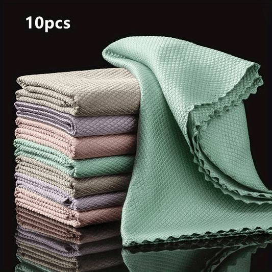 10pcs, Microfiber Towel, Absorbent Kitchen Cleaning Cloth, Non-stick Oil Dish Towel, Rags, Napkins, Tableware, Household Cleaning Towel