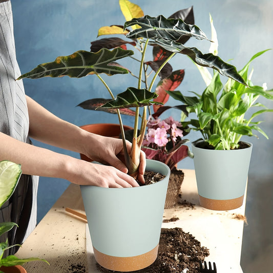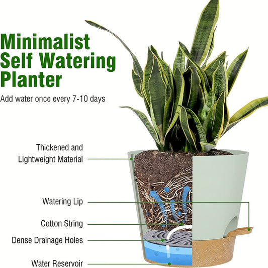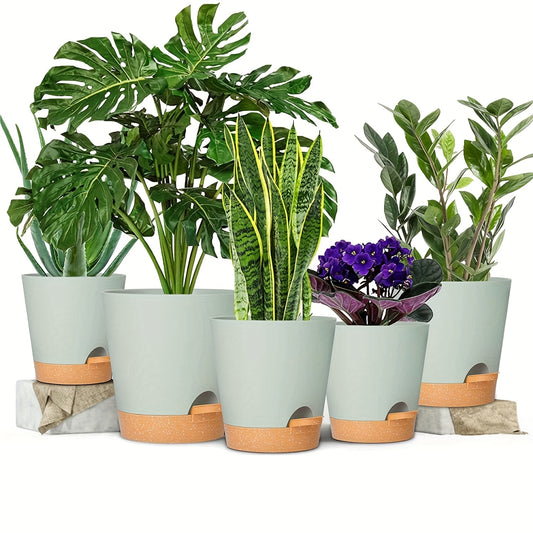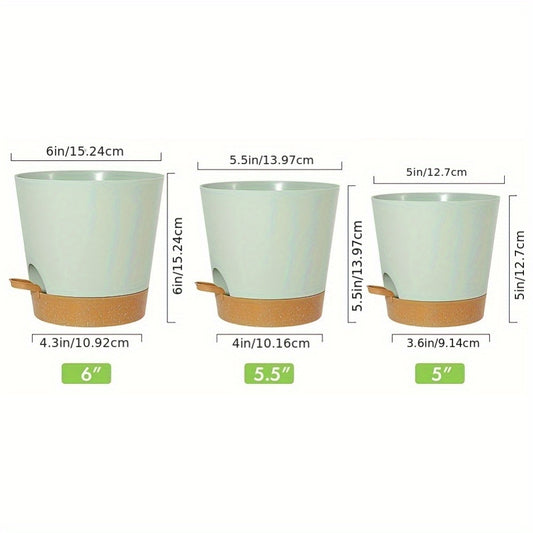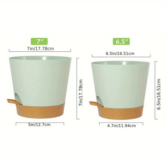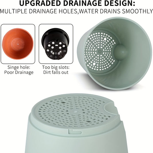 1 Set, Green Plant Pots Set, Self Watering Plastic Planters With Deep Reservior And High Drainage Holes For Indoor Outdoor Flowers Plants, Creative Pots, Super Beautiful Flower Pot, Indoor Outdoor Home Decor Garden Patio