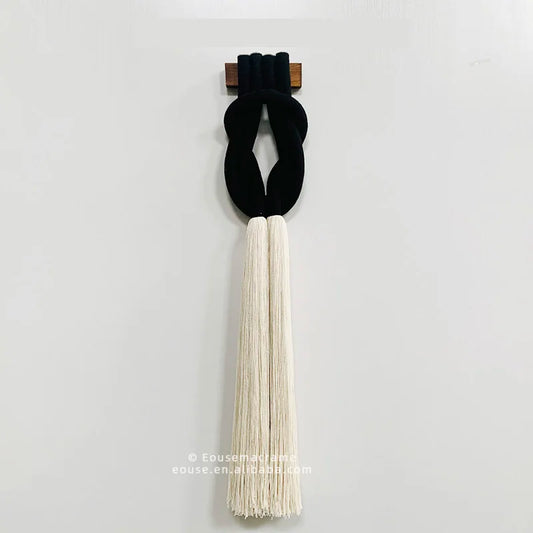 Handmade Black Knotted Design with Long Tassels Minimalist Macrame Wall Hangings Set for Kids' Room