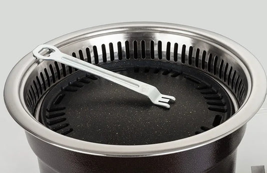 High Quality Round Shape Stainless Steel Indoor Restaurant Equipment Downward Exhaust Smoke Electric BBQ Grill