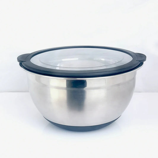 High Quality Stainless Steel Mixing Bowl With Lid Mirror Polishing Inside Matt Outside Non-slip Bottom Nesting Bowl Set
