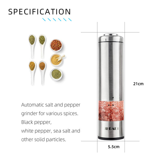 Hot Sales Battery Operated Stainless Steel Electric Salt and Pepper Grinder Set 304 Stainless Steel for Kitchen Cooking