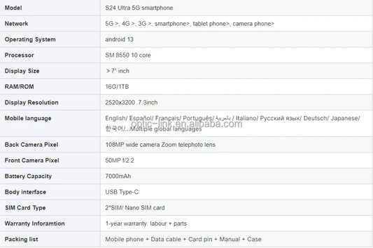 Hot S26 Ultra 5G Smartphone - Snapdragon8gen3 16GB+1TB 7800mAh Face + Fingerprint