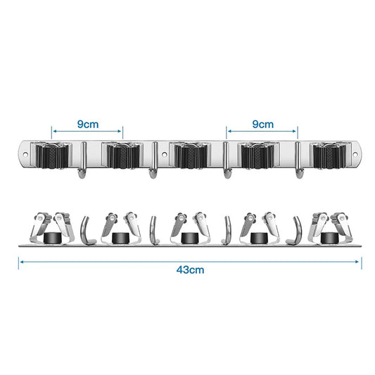 Hot Sale Stainless Steel Self Adhesive Wall Mounted Mop and Broom Holder Clip Brush Rack Cleaning Tools
