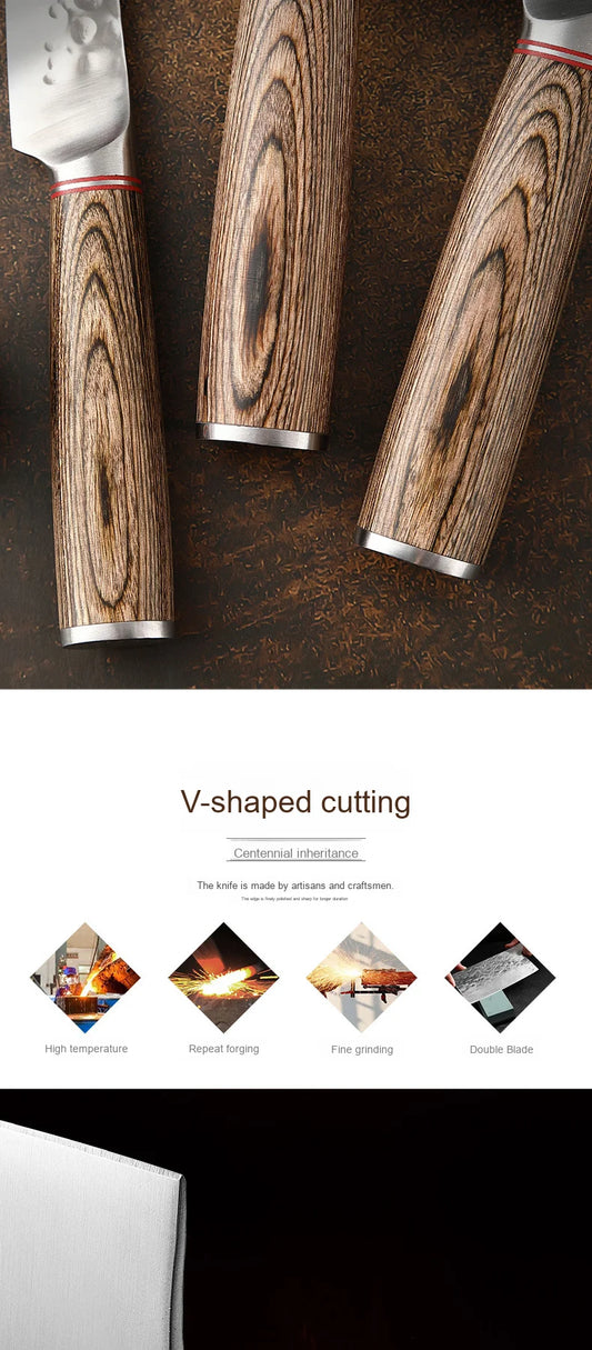 High-quality Kitchen Chef's Knife Set, Hand-forged Sande Fruit Knife and Colored Wooden Handle Meat Cutting