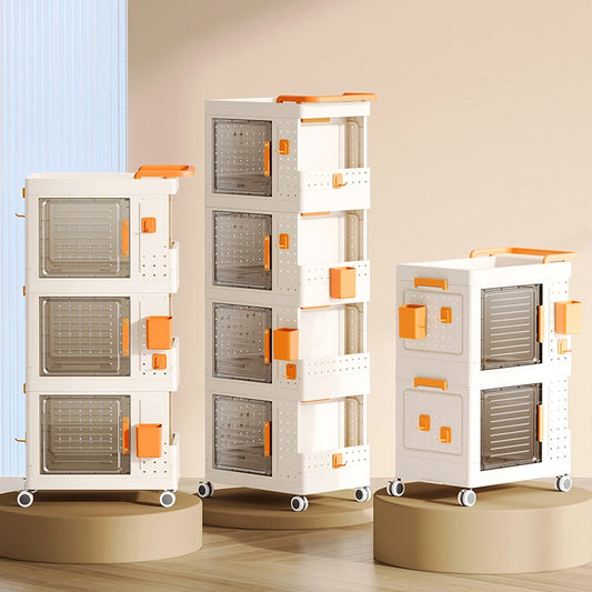 Household Plastic Folding Box Book Toy Storage Cart Bathroom Cleaning Supplies Sortable Movable Rotating Rack Rectangle