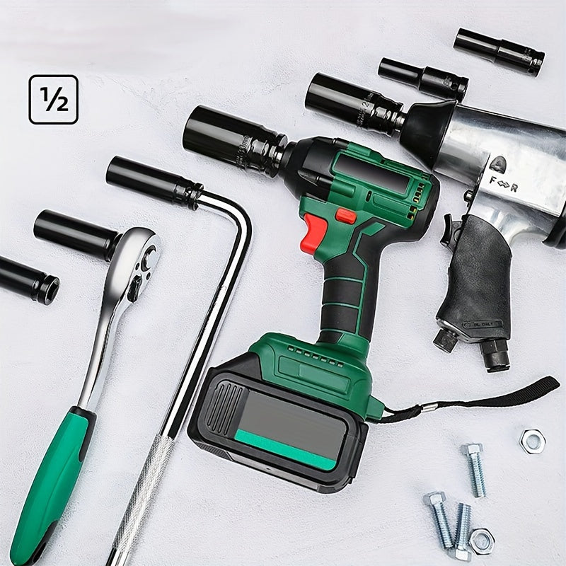 1 Set Heavy-Duty Impact Socket Set, Deep Drive Carbon Steel Sockets, Mechanical Operation, No Power Required, Ideal For Auto Repair And Maintenance