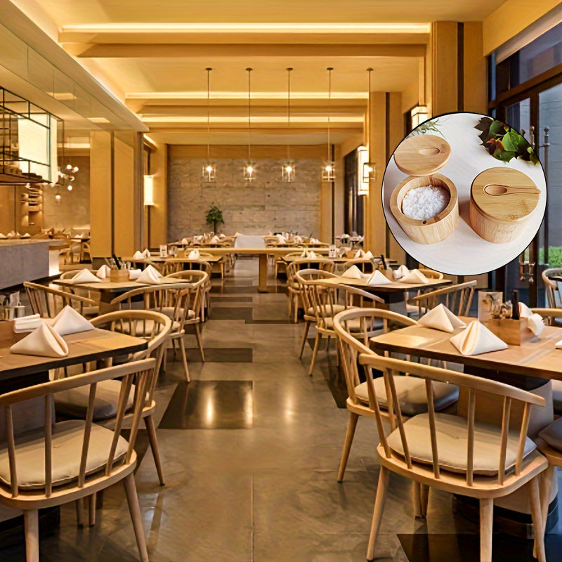 1 Set, Salt Box, Wooden Storage Jar, Wooden Salt Box, Salt Cellar, Wooden Salt Cellar, Wooden Storage Box, Spice Storage Box with Lid, Creative Salt Cellar, Kitchen Stuff, Restaurant Kitchen Gadget