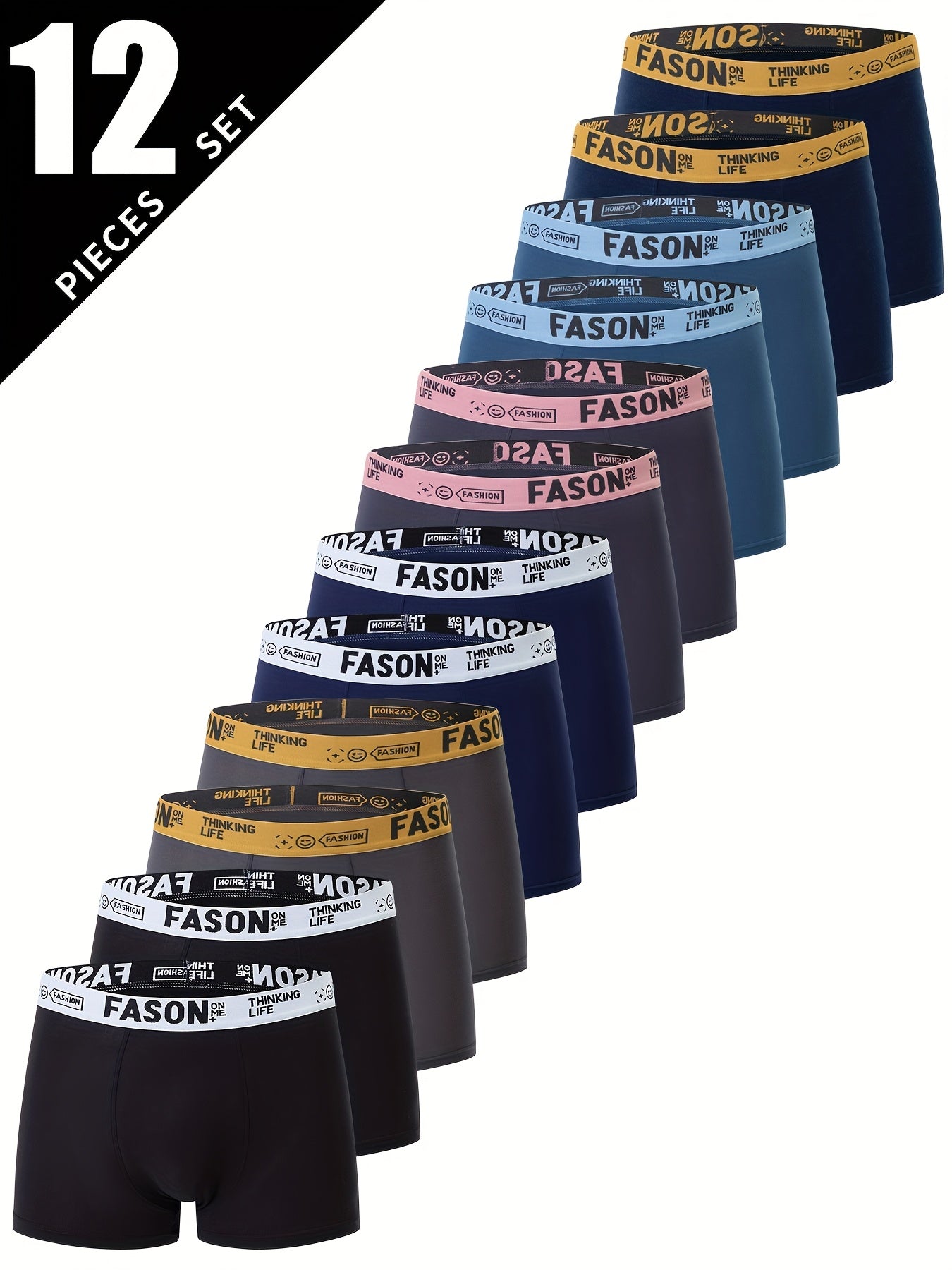 12/24pcs Men'S Boxer Briefs - Breathable, Comfortable, Stretchy Underwear with "FASON" Letter Print, Black, Casual Style, Comfortable Underwear | Stylish Boxers | Smooth Texture Fabric, Men'S Underwear, Boxer For Big Men, For