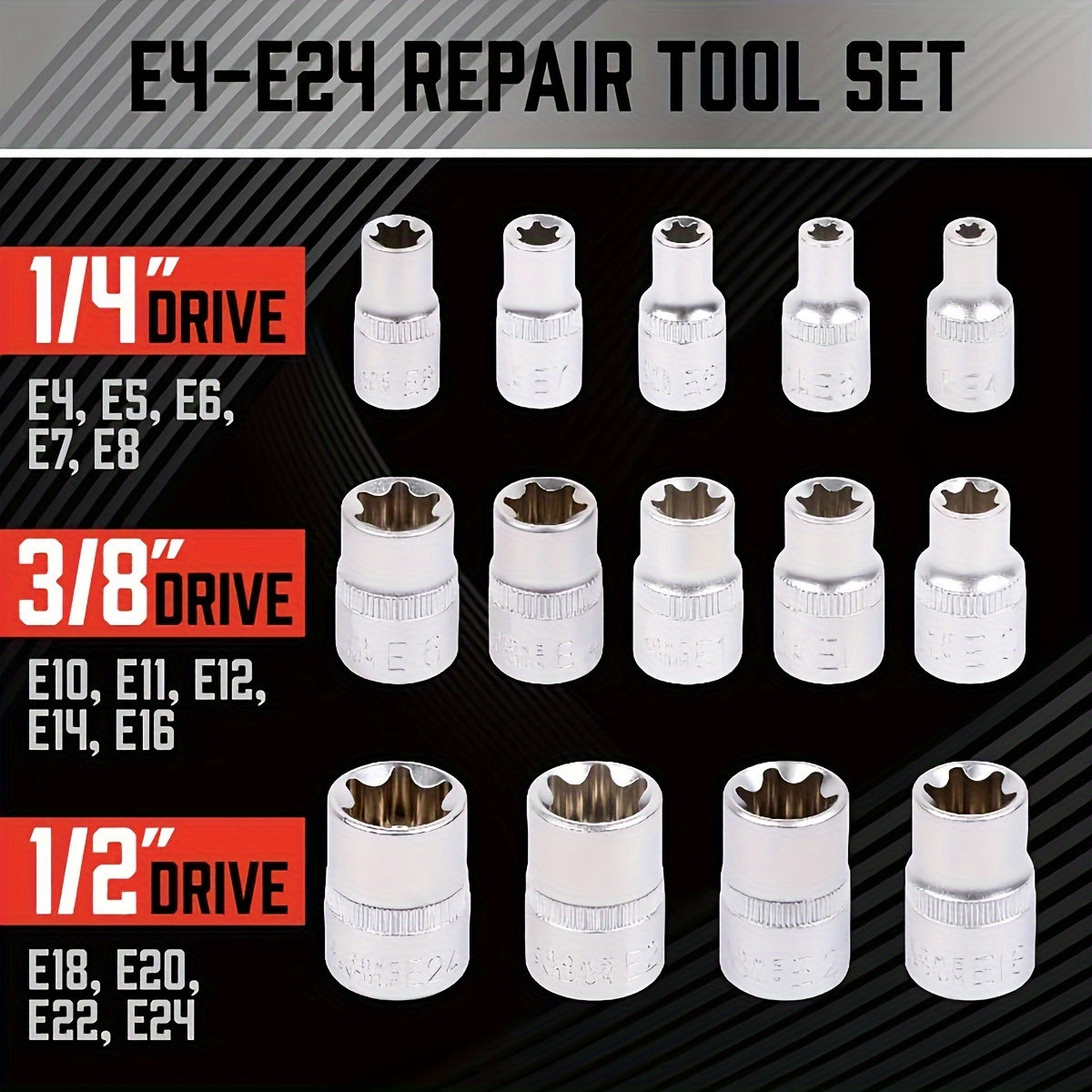 14pcs Hexagon Flower Key Star Type Socket Combination Auto Repair Tool Torx Type Socket