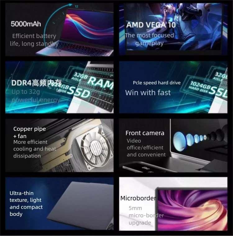15.6 Inch Gaming Laptop with AMD Ryzen 7 32GB DDR4 RAM 512GB NVMe SSD Portable Notebook