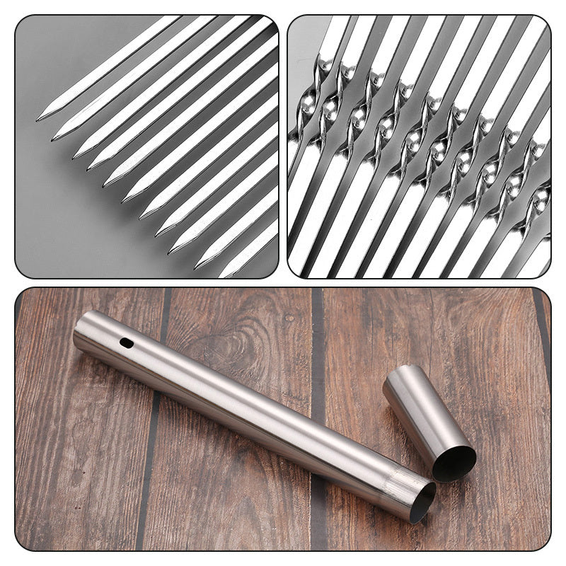 15pcs Stainless Steel Skewers & 1 Tube Storage For Barbecue, Reusable Grill Skewers, Shish Kebab BBQ Camping Flat Forks Gadgets, Outdoor Camping Picnic, Cookware Barbecue Tool Accessories