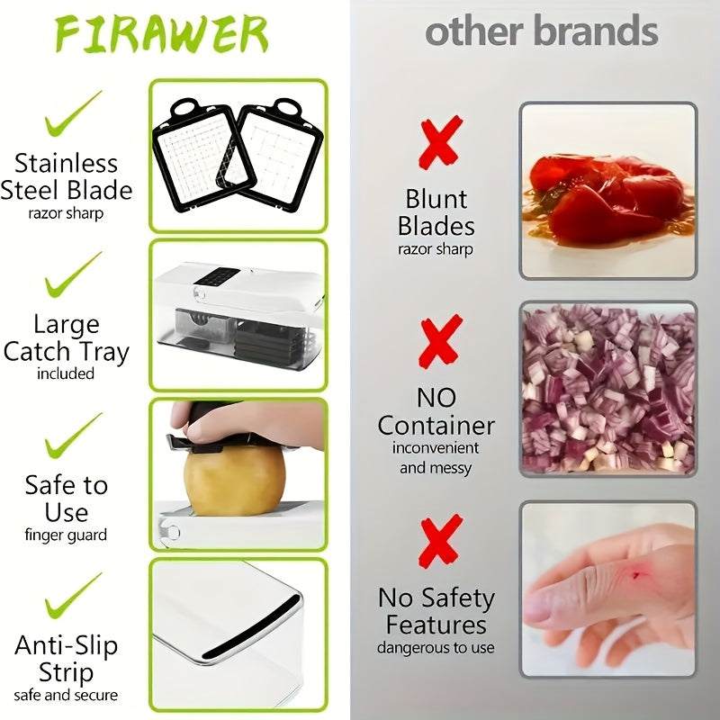 16pcs All-in-One Vegetable & Onion Chopper Set with Drainage Basket - Heavy-Duty Manual Food-Grade Stainless Steel Kitchen Chopper with Carrot, Garlic, Potato, Onion, And More - Ideal For Home, Restaurant, Rv, And Kitchen Use