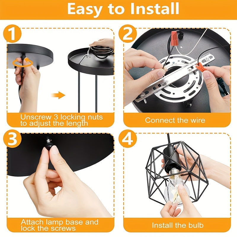 1pc 1/3 Heads Industrial Pendant, Adjustable Hanging Light Fixture, Vintage Farmhouse Pendant Light, With Metal Caged E26 Base, For Kitchen Island Dining Room Living Room