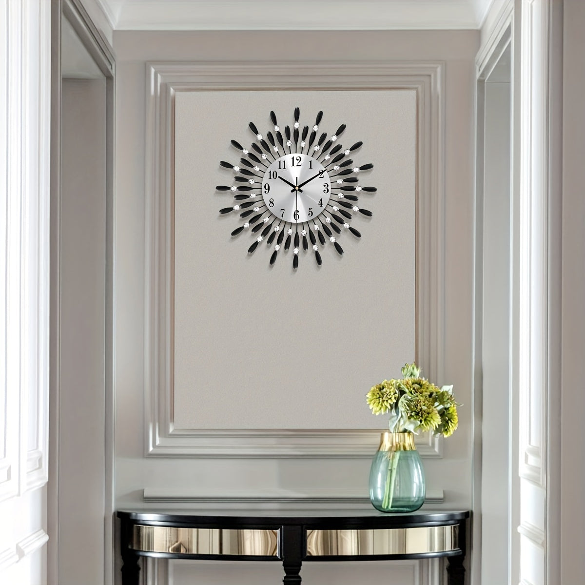 1pc 14.56 Inch Black Small Wall Clock For Living Room Decor, Modern Metal Wall Clocks For Kitchen Bedroom Office Decor, Non-Ticking Quiet Wall Clock Easy To Read