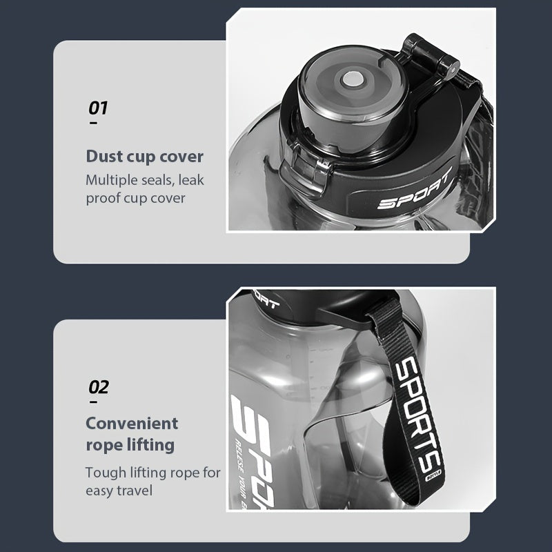 1pc 2.5L/84.54oz Large Capacity Spill-Proof Water Bottle - Portable, Durable PC Plastic with Flip-Top Lid, Ideal for Outdoor Sports, Travel and Fitness, Hydrate in Style with "SPORT" Motivational Design, Sports Water Bottle